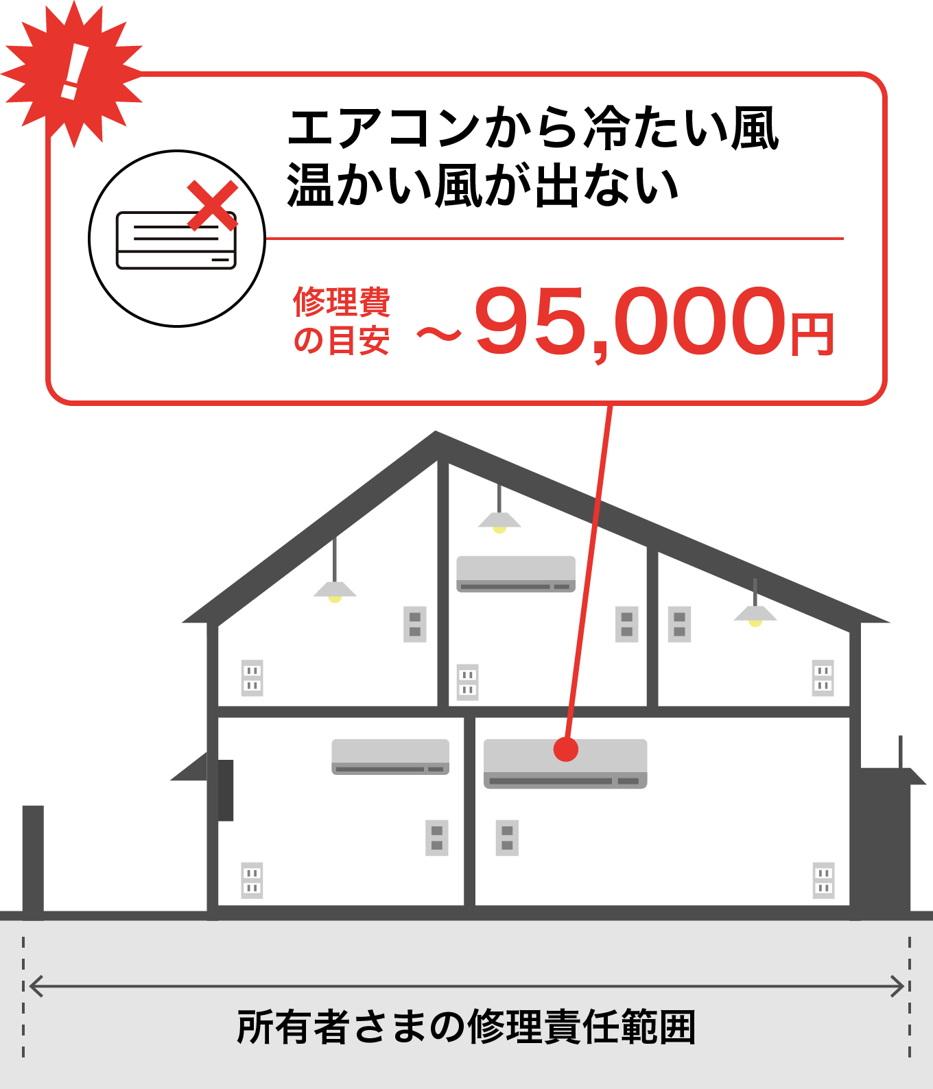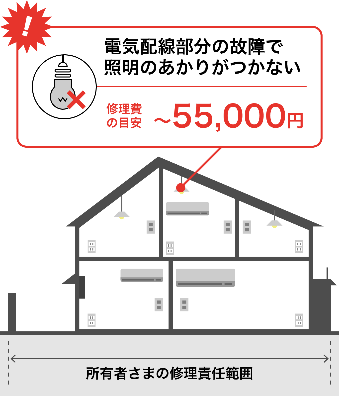 図中の修理費の目安はお客さまご自身で修理業者に修理依頼した場合の金額となります(ホームサーブ株式会社調べ)。