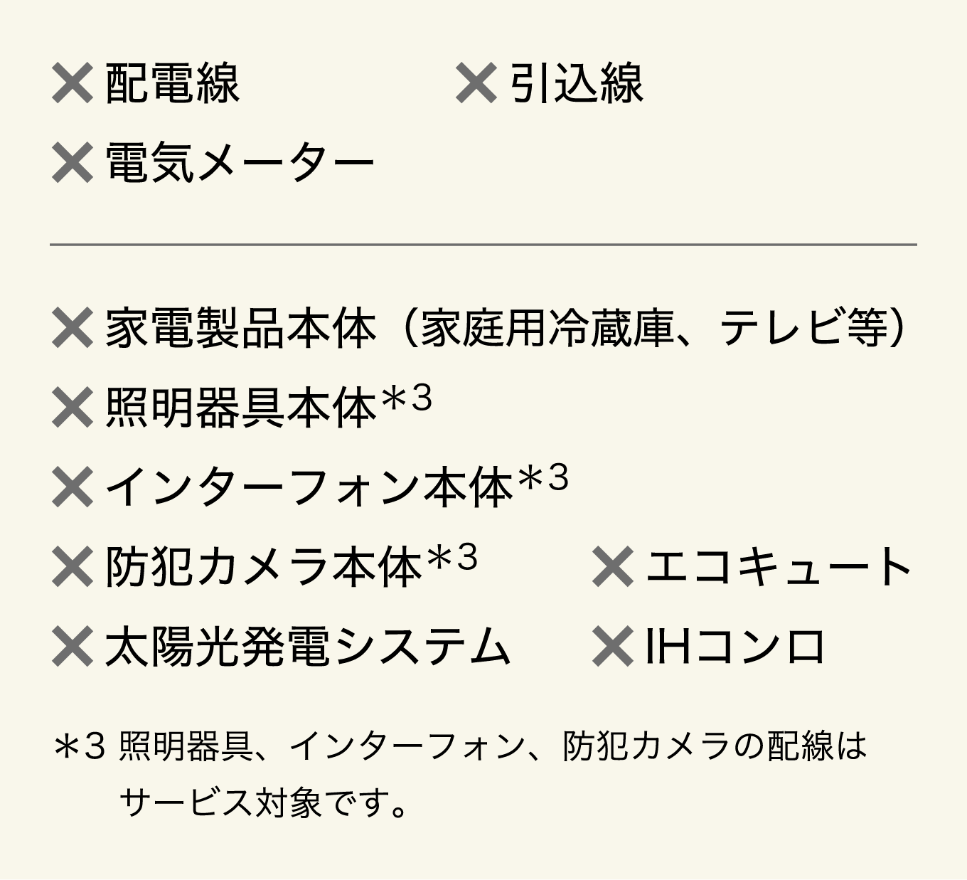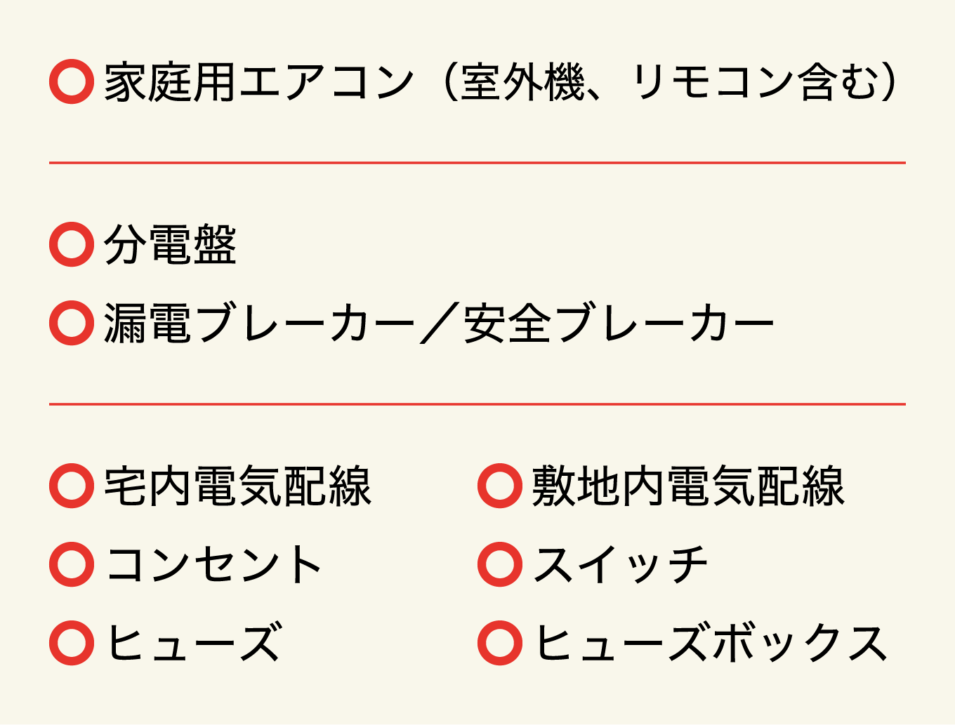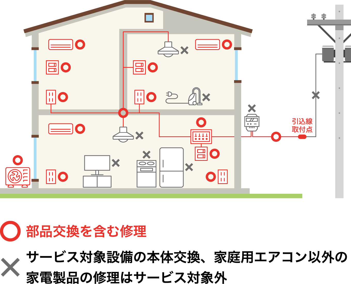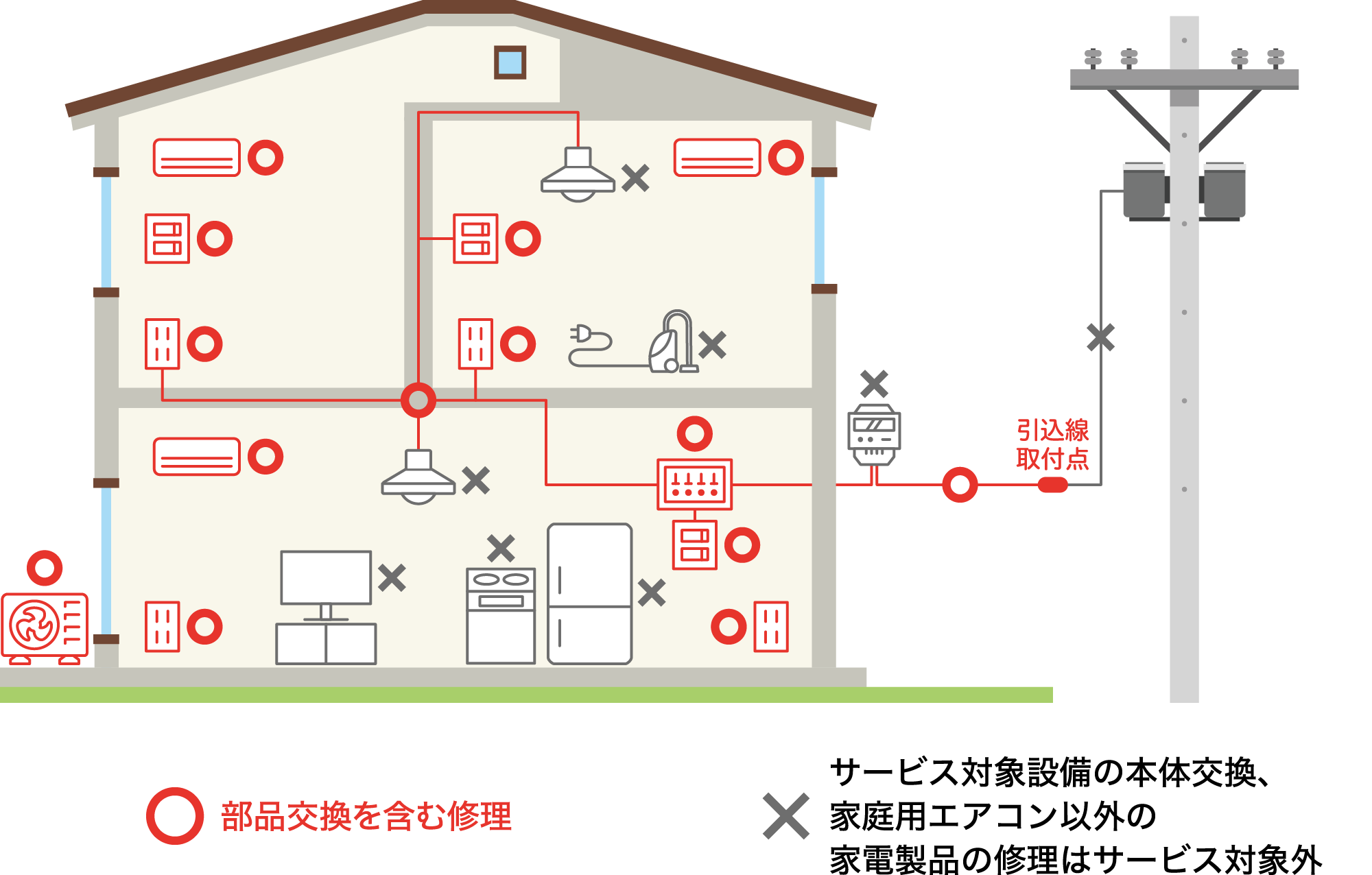 - スイッチやコンセント、家庭用エアコン、電気配線等の故障トラブルに関する定額制修理サービス