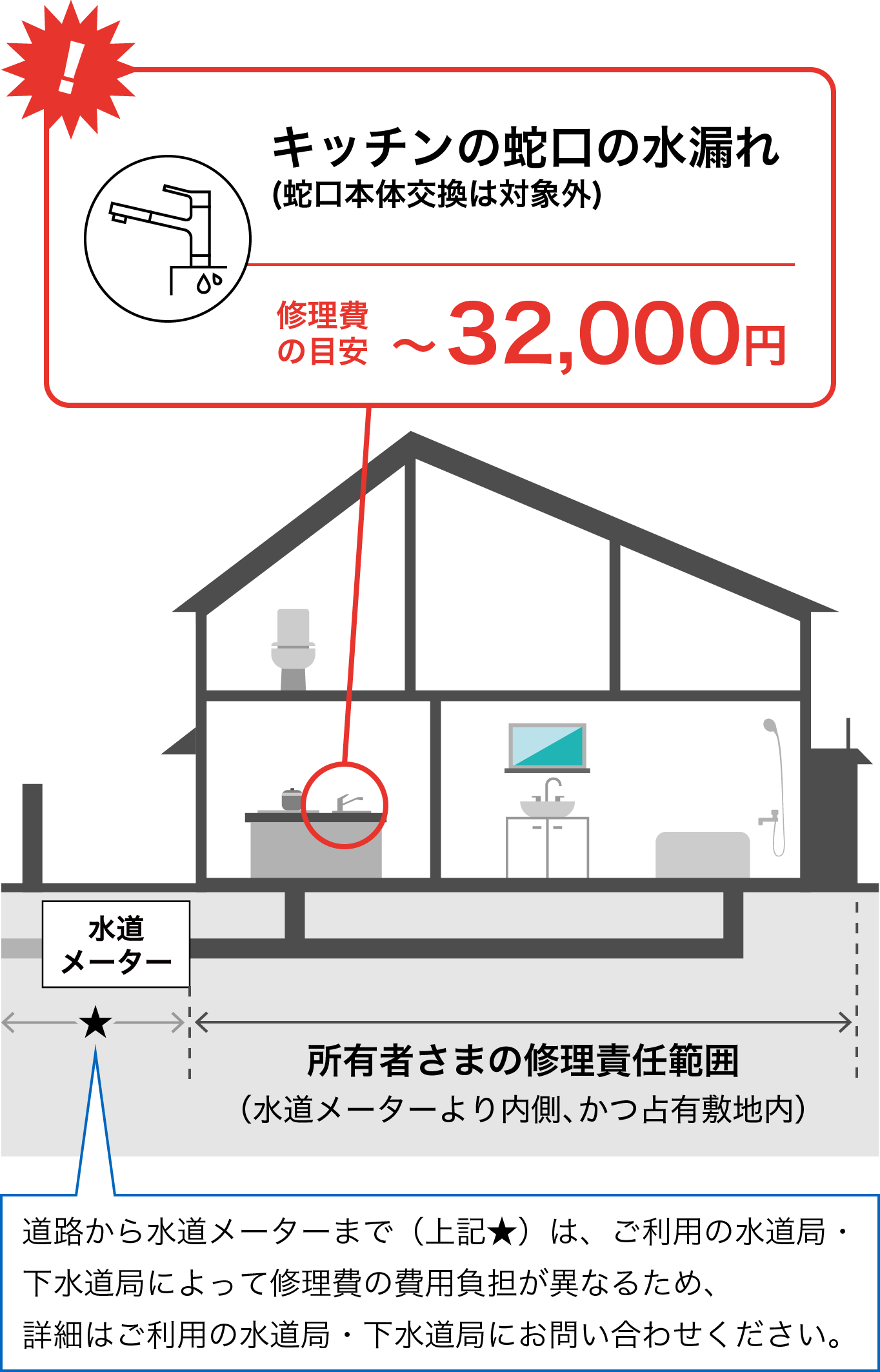 例)蛇口やシンク等の本体設備およびその交換にかかる費用はサービス対象外です。